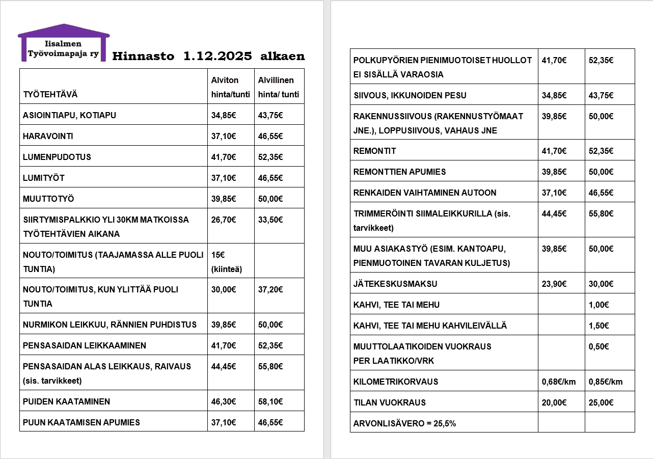 • Hinnasto